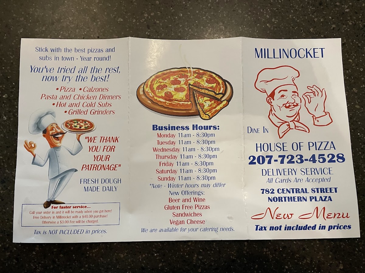 Millinocket House of Pizza Menu (Update 2025)